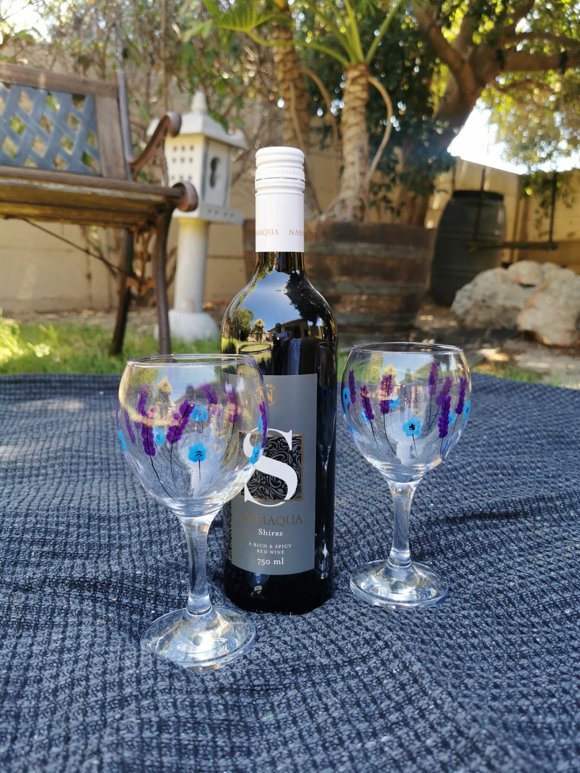 Hand painted and cured wine glasses for that special occasion.
